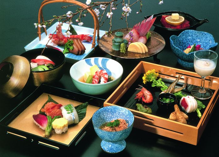 - Refeição: a culinária oriental também prioriza o visual, e no ryokan uma grande variedade de pratos em pequenas porções para encher os olhos são servidas no próprio quarto