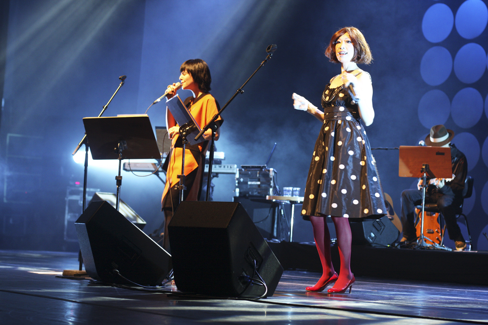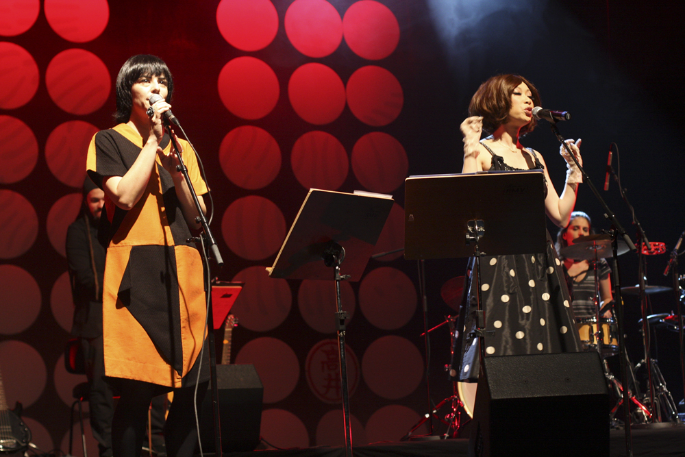 Maki Nomiya, vocalista do Pizzicato Five, e Fernanda Takai, do Pato Fu, se apresentaram no Auditório Paulo Autran, no SESC Pinheiros, em São Paulo.