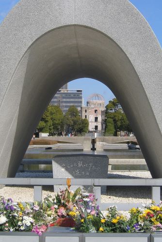 - Nos memoriais em Hiroshima, há muitas flores e também água
