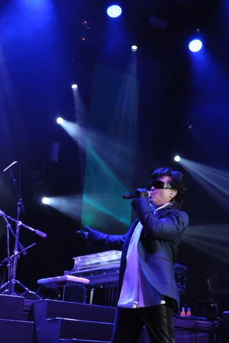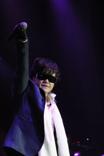- Yoshiki, líder da banda, cumprimenta o público no início do show