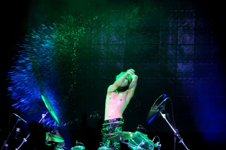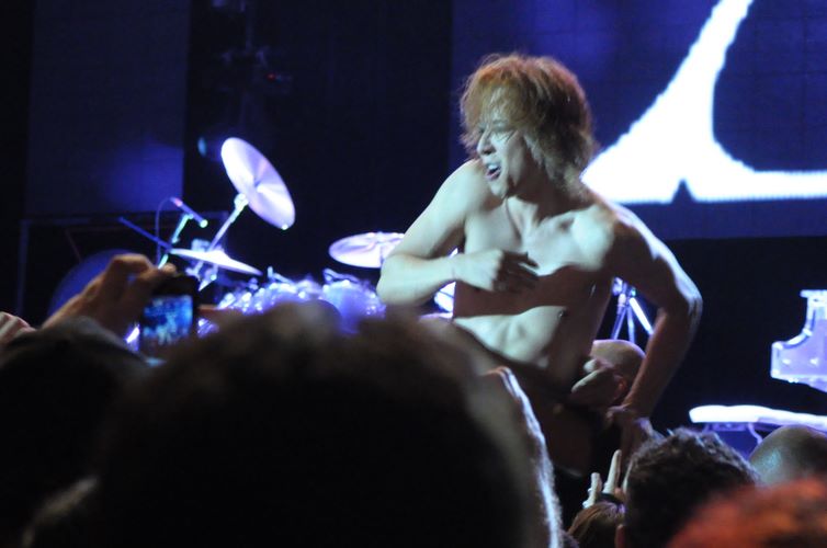 - Tradicional nos shows do X Japan, Yoshiki arremessa água no público