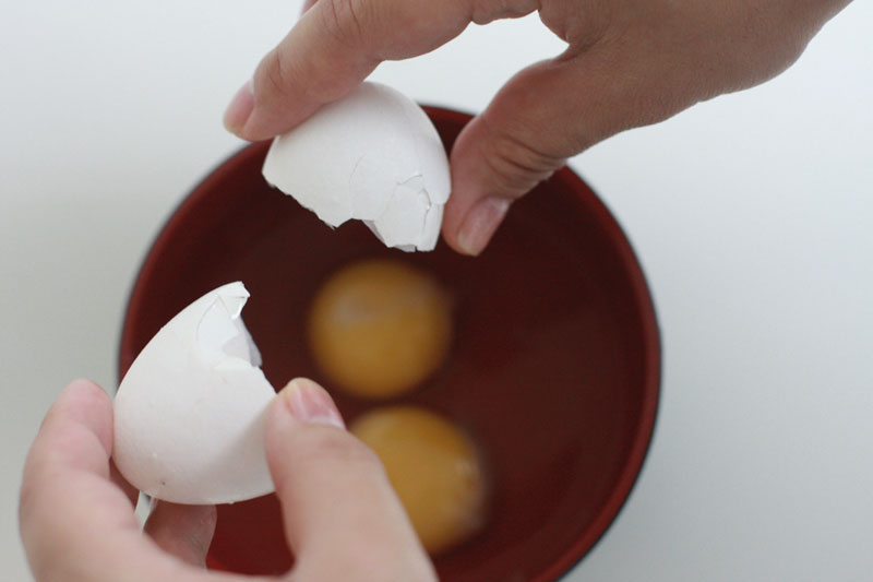 - Quebre dois ovos e tempere com uma pitada de sal.