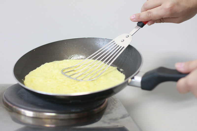 - Omelete passo 4: Frite até a omelete desgrudar da frigideira.
