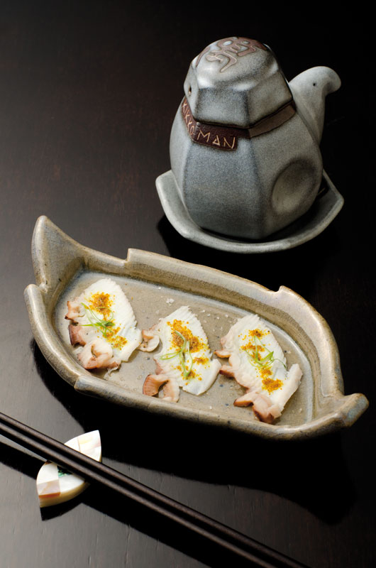 Se logo de cara a decoração impressiona, a culinária mais ainda. Apesar do cardápio tradicional, a execução dos pratos traz toques inusitados de modernidade combinando ingredientes exóticos com fundamento nos sabores autênticos da culinária tradicional japonesa. Os responsáveis por essa arte gastronômica são Alexandre Nakandakari (ex-Hideki), no balcão de sushi, e Jaílson Bernardo (ex-Jun Sakamoto) na cozinha quente. A equipe conta ainda com a atenciosa presença do maître João Fernando da Silva (ex-Kinoshita) e tem uma sólida parceria com a empresa de shoyu Kikkoman.
