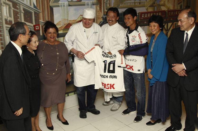 - Zizao entrega camisa personalizada do Corinthians para o chef Koichi Mori