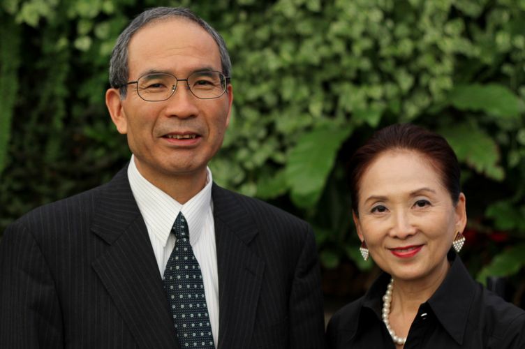 - Cônsul-Geral do Japão Kazuaki Obe e a empresária Chieko Aoki