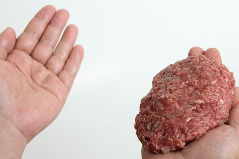 - Passo 6: Agora, pegue um punhado e “jogue” sem muita força de uma mão para a outra. Repetindo o processo umas 10 vezes, o ar vai sair de dentro do hambúrguer e deixá-lo mais gostoso.