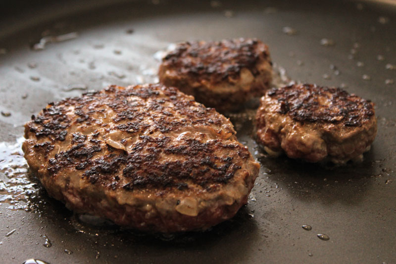 - Passo 7: Aqueça o óleo numa frigideira em fogo médio e frite o hambúrguer por 1 minuto. Depois, vire com cuidado e tampe. Marque 5 minutos.