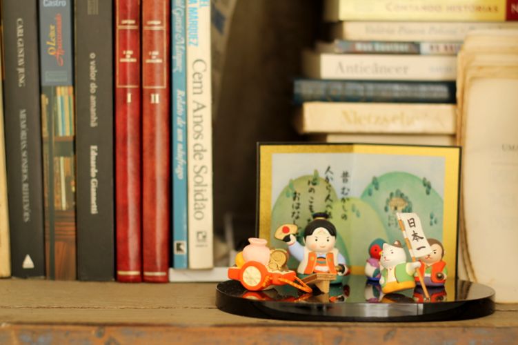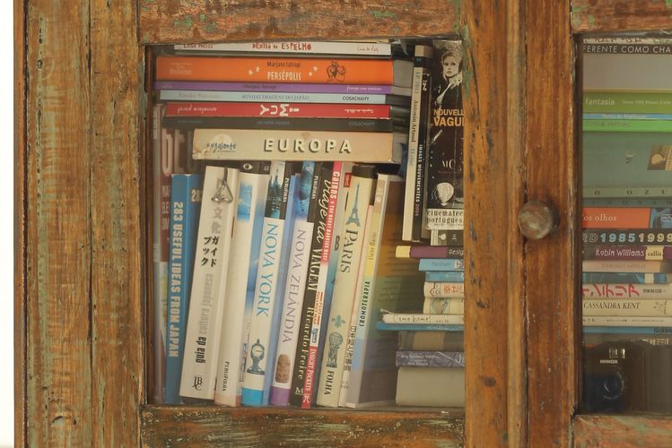 - Um detalhe da estante de livros de Talita
