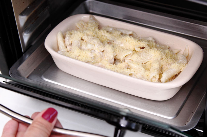 - Passo 8: Gratine no forno de 5 a 10 minutos até que o queijo fique douradinho. Passo 9: Retire a travessa com um pano de prato, tomando muito cuidado para não queimar as mãos.