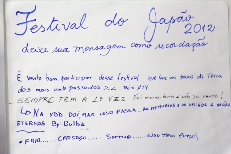 Já na sexta-feira, quando o público não é tão numeroso, ouvimos reclamações de pessoas sentadas na plateia, de que estávamos atrapalhando sua visão. No sábado, durante os desfiles do Miss Nikkey 2012, mesmo portando uma credencial especial que dava acesso direto ao palco, um dos nossos fotógrafos foi empurrado por outro profissional da imprensa; este, posicionado além da grade.