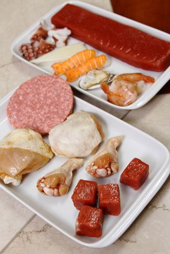 - Amostras de alimentos reproduzidos em silicone pela técnica do mock-up
