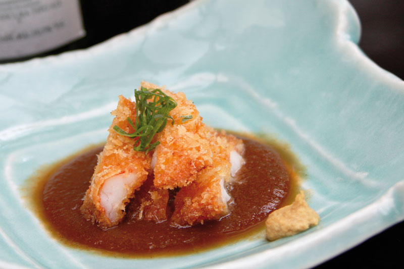 Para finalizar a sequência de pratos elaborados pelo chef Murakami, veio um camarão empanado com molho tonkatsu e um toque de mostarda karashi. A Damm continuou imbatível, embora um retorno a Dry Lagger tenha se revelado interessante, pela sua leveza, e sobretudo, pela sua adstringência, que combina bem com fritura.