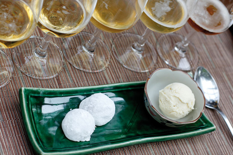 A sobremesa, muito especial, e feita na hora, foram macios bolinhos de mochi recheados com chocolate Valrhona e uma bola de sorvete. Testamos com todas as cervejas, mas a Lust se saiu melhor devido à sua doçura.