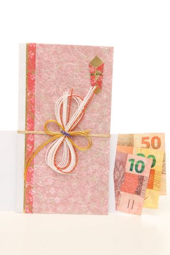 Envelope de celebrações O envelope com laço vermelho e branco, com formato de “borboleta” ou mais elaborado é usado para celebrações em geral, como aniversário, formatura, chegada do ano-novo, etc. Um laço que pode ser desfeito com facilidade indica o desejo de que a celebração seja comemorada outras vezes.