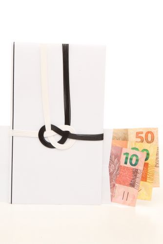 O terceiro tipo mais comum de envelope é aquele com o laço de cordas pretas e brancas. Este é destinado à família de um falecido, como condolência e contribuição aos gastos do funeral e enterro. Neste tipo de envelope não se usa o noshi, pois ele é usado apenas como símbolo de celebração.