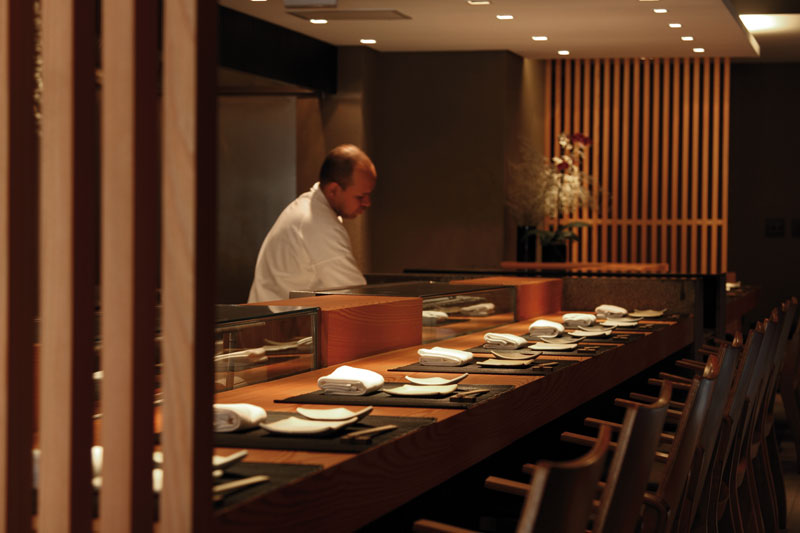Dez projetos de restaurantes no portfolio. Sem propriamente dirigir conscientemente sua atividade para o setor, Naoki Otake foi se especializando em projetos para estabelecimentos gourmets por conta do destino. Ou dos ventos, para ser mais xintoísta. E os ventos realmente sopraram a favor. O mercado de alta gastronomia é um dos que mais cresceu nesta última década, e favoreceu a entrada de Naoki neste segmento.