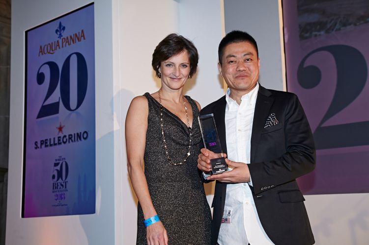 - Prêmio Acqua Panna de melhor restaurante da Ásia – Narisawa, Tóquio, Japão – Yoshihiro Narisawa junto com Antonella Stefanelli, International Business Unit, S.Pellegrino