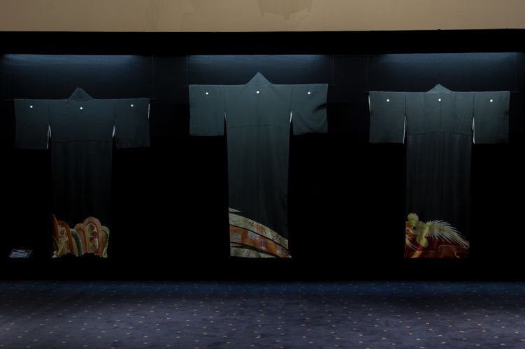 - Kurotomesode são quimonos pretos para ocasiões formais, usados por mulheres casadas. Os detalhes nas mangas e no alto das costas são os símbolos da família