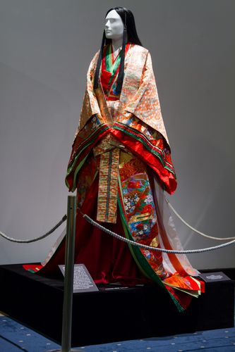 - Réplica de um quimono de 12 camadas, usado nas cortes da era Heian (795-1185)