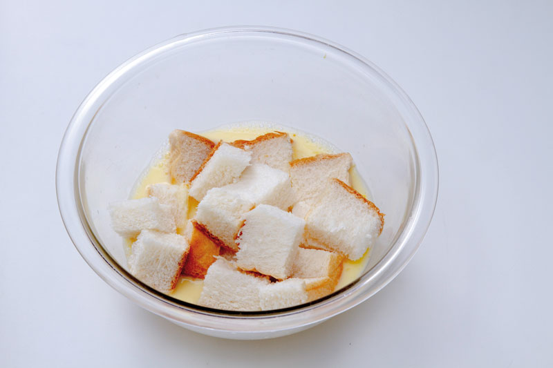 - Passo 6: Adicione os pedaços de pão de forma na mistura