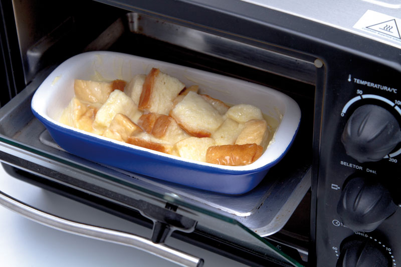- Passo 9: Despeje tudo no recipiente, começando primeiro pelos pedaços de pão