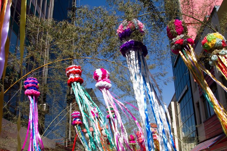 As ruas do bairro da Liberdade ficaram enfeitadas com bambus e decoração de papel feita por voluntários da ACAL, como a Mari Oshikubo, instrutora de taisso, que estava ajudando a vender os tanzakus (tiras de papel onde se escreve o pedido). “A pessoa faz um pedido, escreve no papel e pendura nos bambus. Pode ser para si ou para uma outra pessoa. Depois, nós recolhemos tudo, levamos para fazer uma missa e, durante a cerimônia, os papéis são queimados”, explicou Oshikubo. Ela contou também que os os enfeites de papel, ou “minitanabatas”, também estavam sendo vendidos para que as pessoas levassem para casa para levar bons fluidos e paz.
