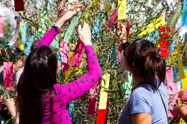 - Depois de feito o pedido, o tanzaku deve ser pendurado no bambu