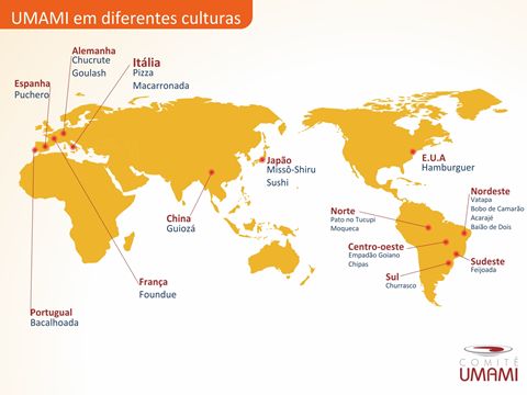 - O gosto umami pode ser percebido em pratos de países do mundo todo