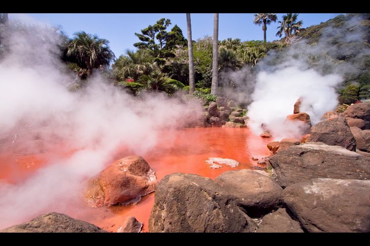 - Chi-no-ike Jigoku, em Beppu, tem coloração vermelha, por isso é chamado de “lago de sangue”)/ Elvin (CC)