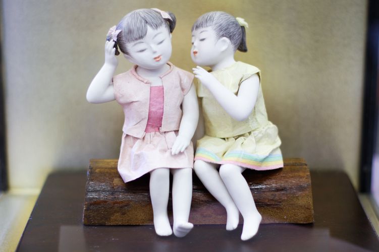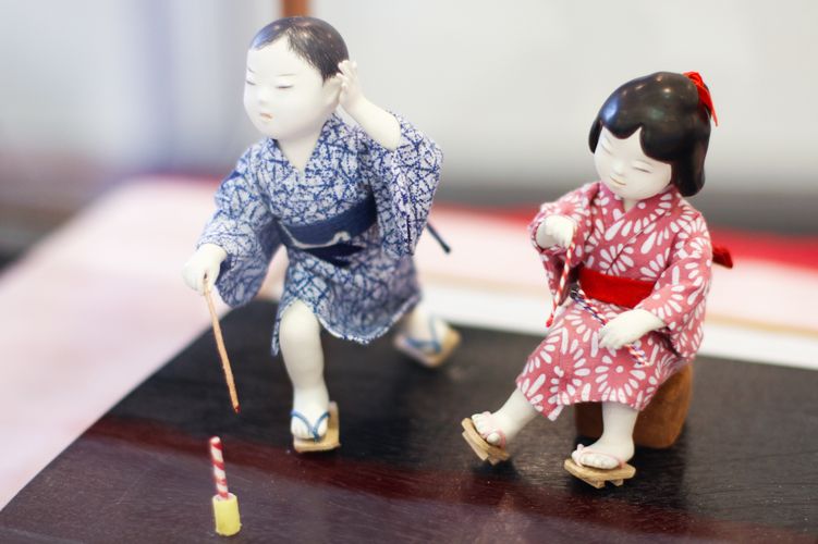 - Tosso Ningyo é uma das manifestações da arte koguei que trabalha com pó de conchas, feitas pela artista Junko Matsui