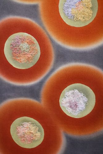 - Tecido tingido por Hisako Kawakami, com elementos naturais como pau-brasil, romã e cenoura