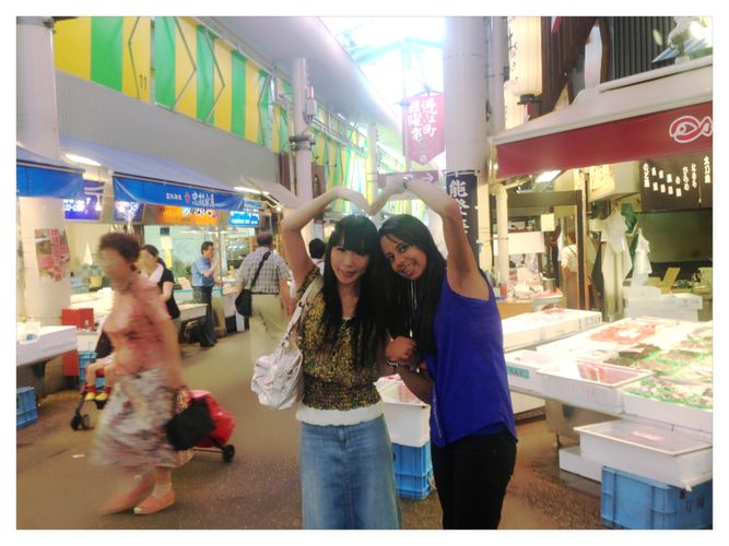À noite, fomos nos encontrar no Omicho Ichiba com a VJ da Ishikawa FM, Rie Matsuoka.