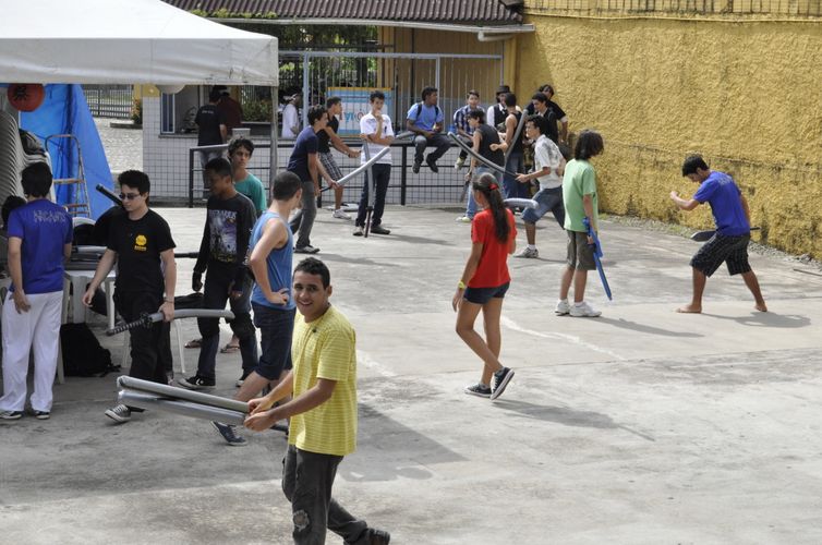 A garotada se divertiu com o concurso cosplay interpretando seus personagens favoritos no palco do festival e no pátio com os treinos com espadas.