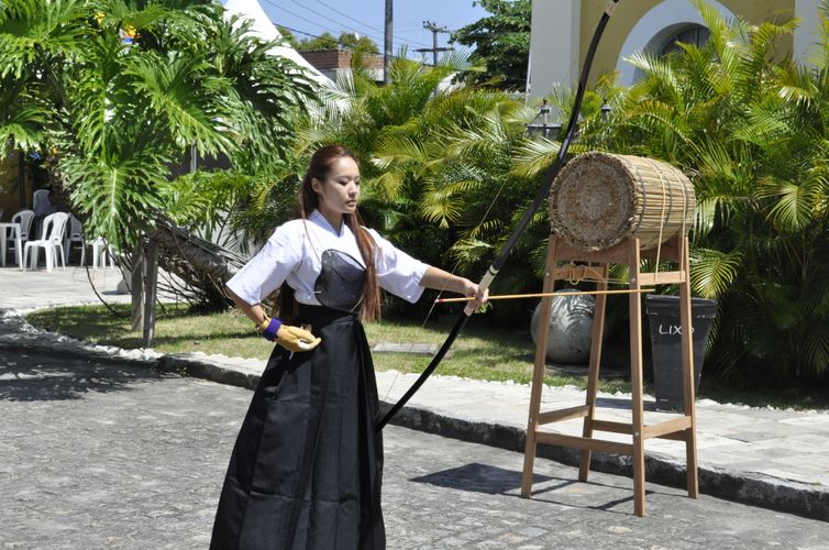 As apresentações de kendô, jiujitsu e aikidô mostraram um pouco da cultura das artes marciais orientais e a demonstração de kyudô da professora Maiko Hiramoto também convidou participantes a experimentarem as técnicas e movimentos.