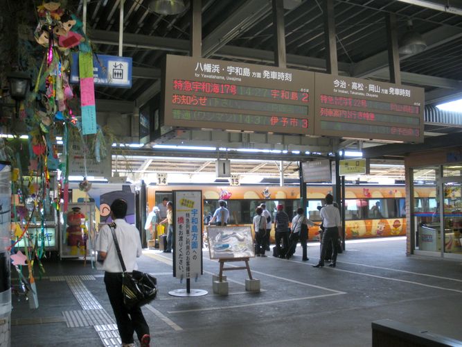- Trem temático passando pela estação de Matsuyama, na província de Ehime, vizinha de Kochi