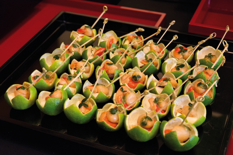 Para um evento promovido pelo Consulado Geral do Japão em São Paulo, Junko convidou o chef Shin Koike para um desafio: o encontro da gastronomia com o design. Sobre os recipientes desenhados por Junko Koshino, o chef fez desfilar finger foods que expressem os conceitos da culinária tradicional japonesa.