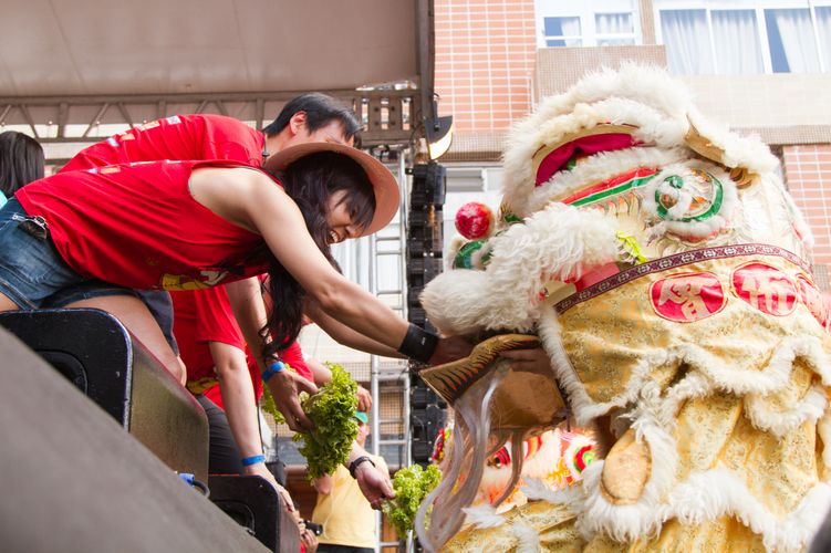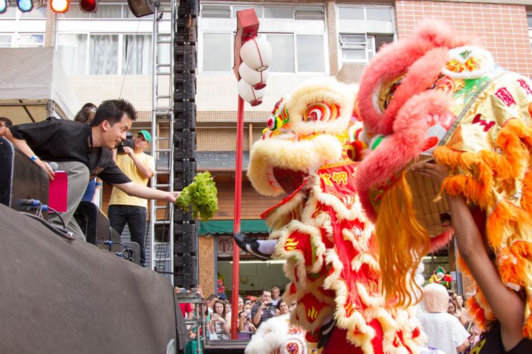 Enquanto os participantes celebravam “Xin Nian Kuai Le”, que significa “Feliz Ano Novo”, os leões Nian foram simulavam a colheita do alface, que na língua chinesa tem uma pronúncia semelhante à “colheita da sorte”.