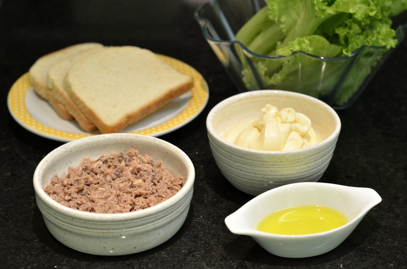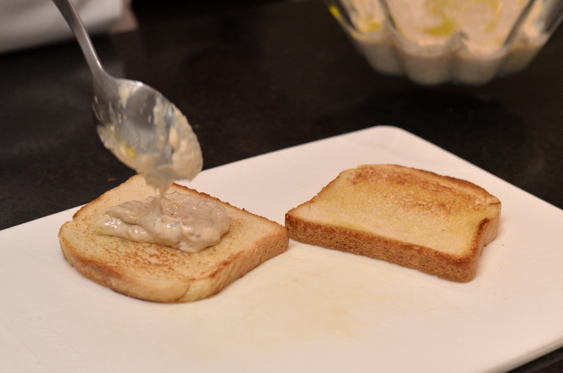 - Passo 4: coloque o tuna mayo sobre um dos lados do pão