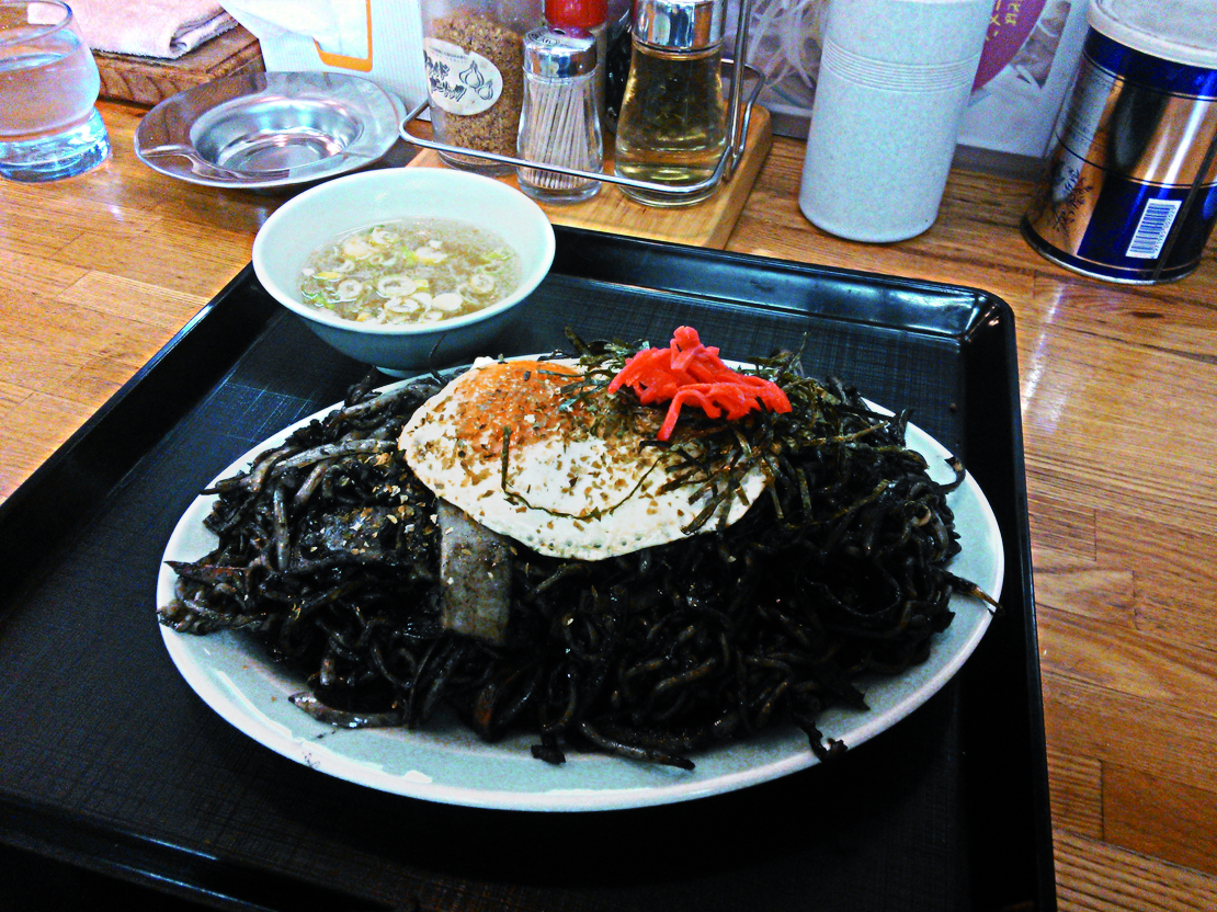 - Black yakisoba: tinta de lula, ovo frito e benishoga, prato típico da cidade de Itoigawa, na província de Niigata