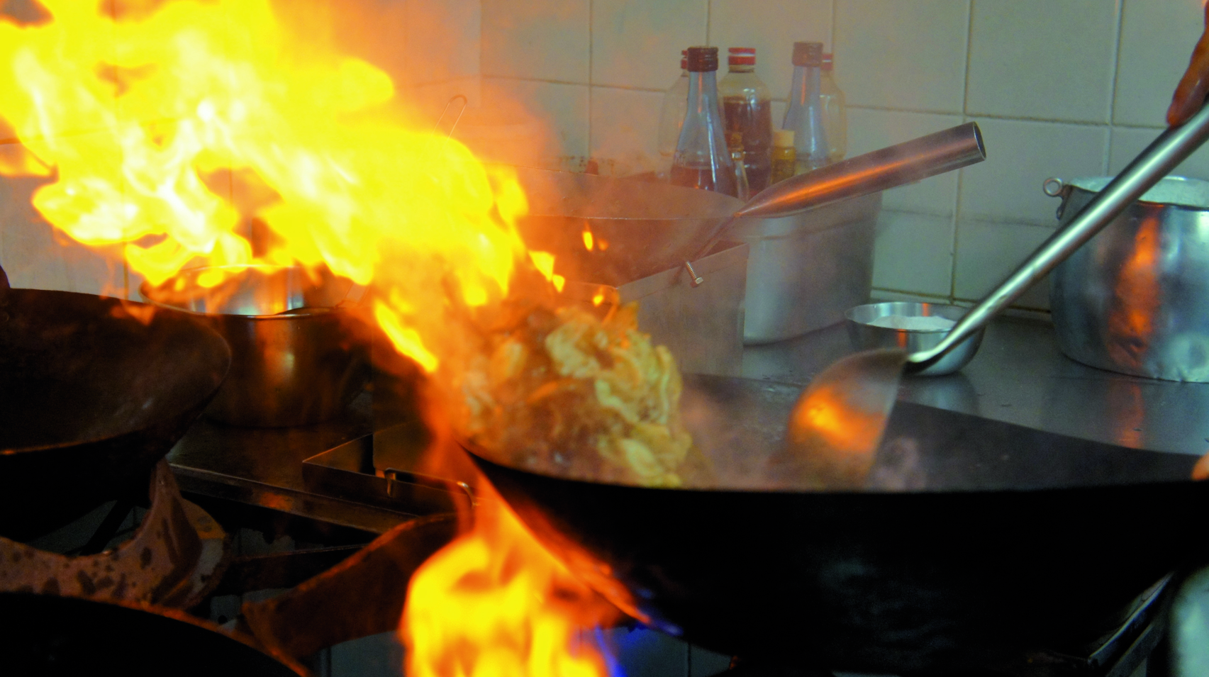 - Molho sendo preparado na panela wok pelo chef Álvaro Turra, do tradicional restaurante Taizan. O fogo alto, que chega a pegar diretamente nos ingredientes do molho, e o sabor metálico da panela em alta temperatura conferem um gosto todo especial a este yakisoba