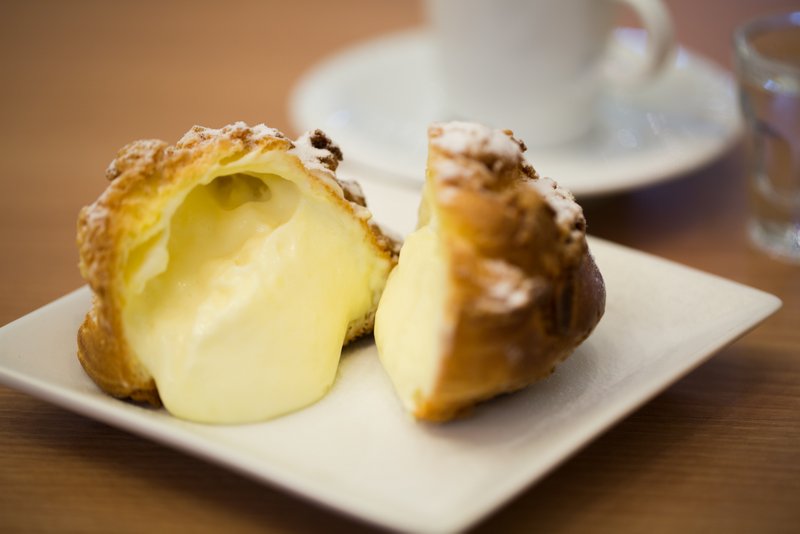 O choux cream é um dos carros-chefe da casa e aparece nas versões tradicional ou com uma casquinha crocante de amêndoas. O bolo de chocolate também atrai pela apresentação impecável e o sabor marcante de chocolate belga. E para os que forem num dia tranquilo durante a semana, pode ser até que o barista Alex Ando traga um mimo de latte art no café com leite.