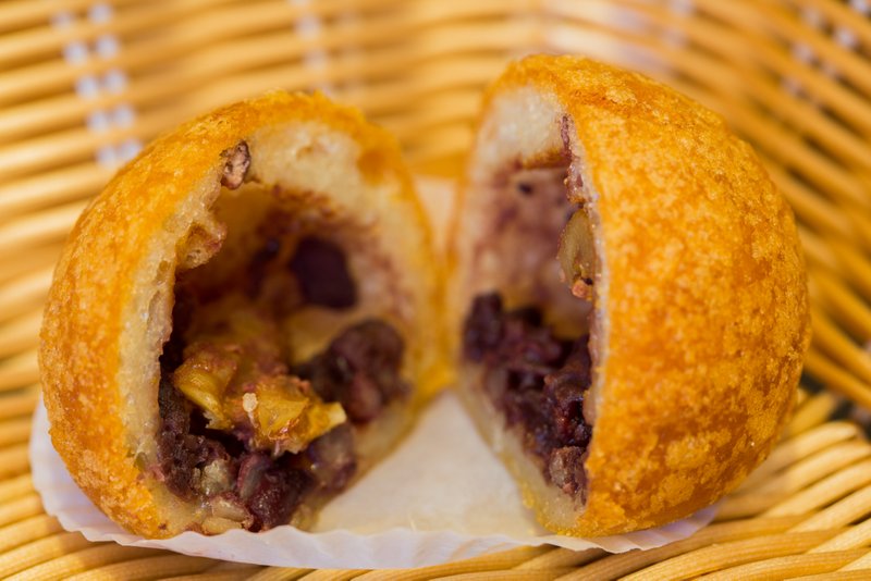 - Donut de arroz glutinoso (mochi) recheado com anko e nozes, da Bellapan