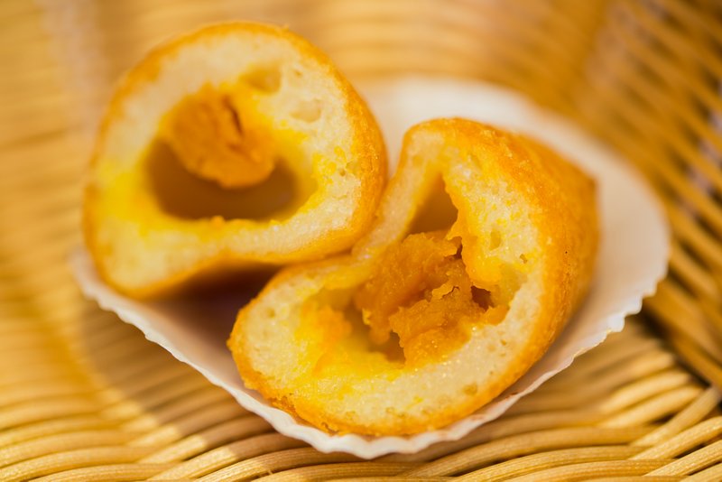 - Donut de arroz glutinoso (mochi) recheado com abóbora, da Bellapan Bakery