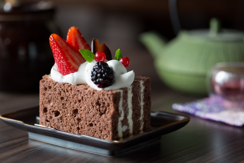 - Apresentação cuidadosa e sabor suave são características marcantes dos doces japoneses. Na foto: bolo de chocolate recheado com creme de chocolate branco do Expresso Kazu