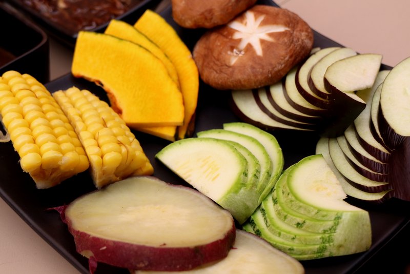 Basicamente, boa parte da graça de comer yakiniku é o preparo. Além de carnes, legumes e frutos do mar também são opções.