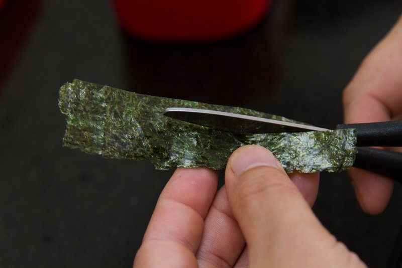 - Corte uma tira fina de alga nori