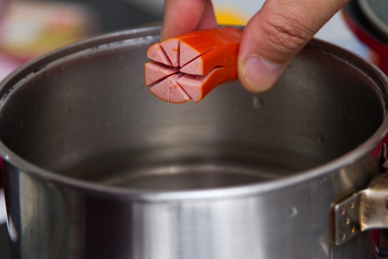 - Coloque a salsicha em água fervente