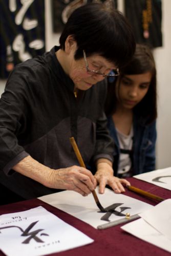 A escrita elevada à arte retrata dos ideogramas japoneses que devem ser desenhados em pinceladas únicas, que não são passíveis de retoques, e seguindo uma ordem e direcionamento específicos. “Quando se escreve em ordem errada, a letra acaba ficando errada e pode até se transformar em outro kanji (ideograma). A ordem da escrita faz toda a diferença”, explica Cristina Sagara.