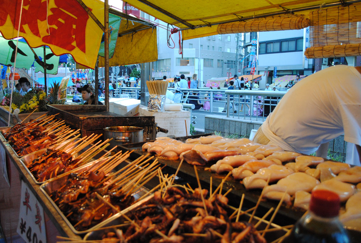 Mais do uma obra de arte no céu, as festividades também trazem todo um ar (quente, bem quente e úmido e quente!) alegre e descontraído com comidinhas de rua como lula grelhada, takoyaki e raspadinha de gelo (saiba mais sobre comidas de rua do Japão, na Hashitag) e barracas de brincadeiras para as crianças.